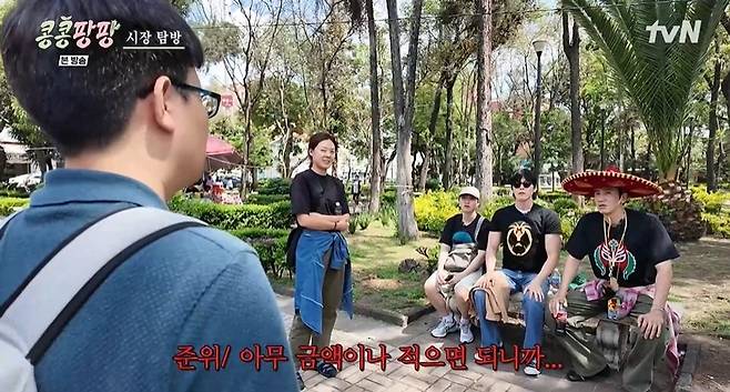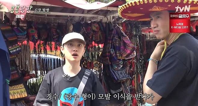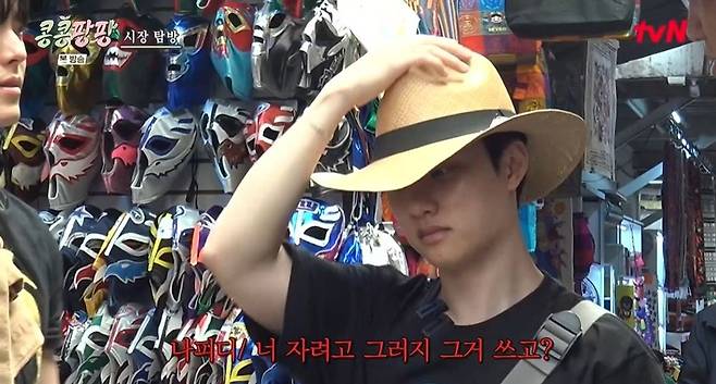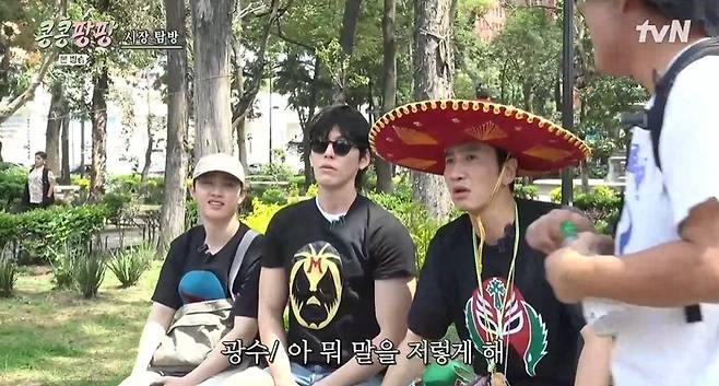 31일 방송된 tvN '콩콩팡팡(콩 심은 데 콩 나서 웃음팡 행복팡 해외탐방)' 3화에서는 KKPP 푸드 대표 이사 이광수, 감사 김우빈, 본부장 도경수가 멕시코에서 의상을 구입했다.