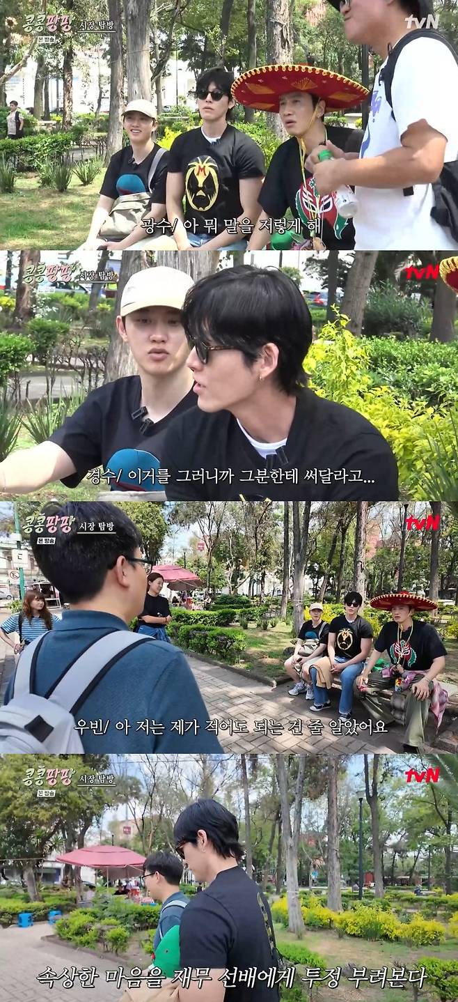 31일 방송된 tvN '콩 심은 데 콩 나서 웃음팡 행복팡 해외탐방'(이하 '콩콩팡팡')에서는 본사의 의류 쇼핑 지원 찬스로 공예품 시장에서 쇼핑을 하게 된 김우빈, 이광수, 도경수의 하루가 담겼다.