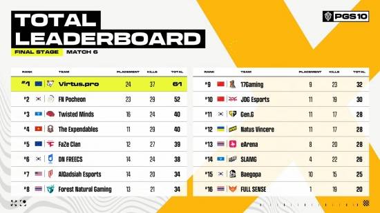 버투스 프로, 61점으로 파이널 스테이지 1일 차 1위…FN 포천 2위 (PGS 10) [종합]
