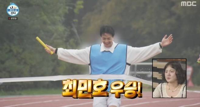 마지막 주자는 최민호와 기안84. 기안84도 빠르게 달렸지만, 최민호가 추월에 성공했다. 스튜디오에서 기안84는 못 보겠단 듯 얼굴을 가리며 "짜증 나. 아이돌 생활 안 해?"라고 말해 웃음을 안겼다.