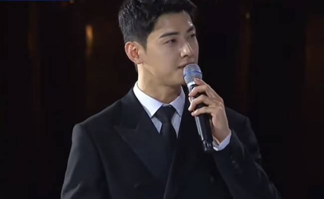 [OSEN=김수형 기자] 가수 겸 배우 차은우(본명 이동민)가 군 복무 중에도 세계 무대에 섰다.APEC(아시아태평양경제협력체) 정상회의 환영 만찬 현장에서 그는 진행자로 깜짝 등장, 수준급 영어 실력과 여전한 조각 비주얼로 세계 정상들을 사로잡았다.