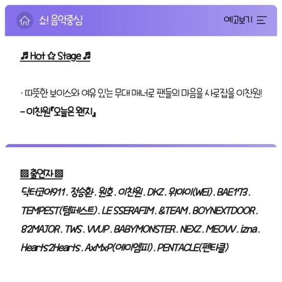 최근 MBC '쇼! 음악중심'은 공식 홈페이지를 통해 11월 1일 출연진을 공개했다.