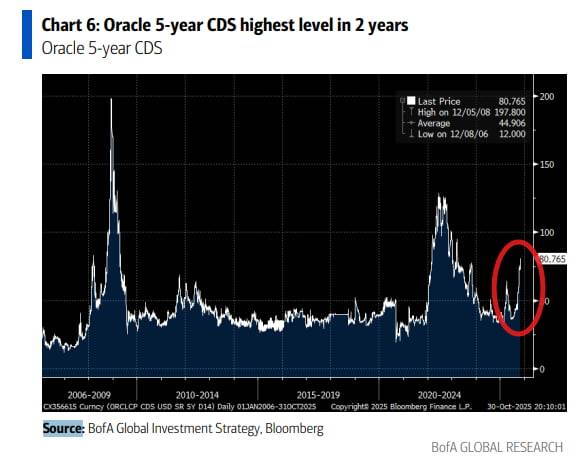 이러다 보니 이들 기업에 대한 CDS(크레딧디폴트스왑: 부도에 대비한 보험) 수수료가 높아지고 있습니다. 뱅크오브아메리카는 "오라클의 5년 CDS 프리미엄이 2년 만에 최고 수준으로 높아졌다"라고 지적했습니다.