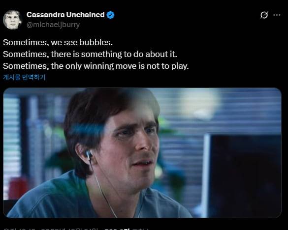 그래서 AI 버블에 대한 경고가 나옵니다. 영화 '빅숏'의 주인공인 유명 투자자 마이클 버리는 오늘 "가끔 우리는 버블을 본다. 때로는 이에 대해 할 수 있는 일이 있다. 때로는 이기는 유일한 방법은 투자하지 않는 것"이라고 밝혔습니다.