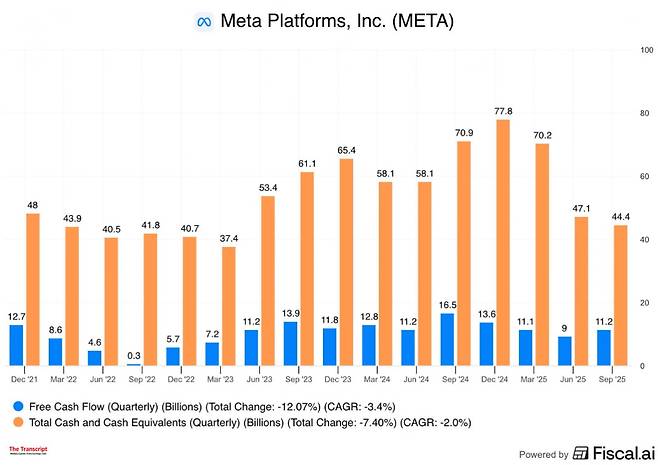 투자자들이 AI 자본지출이 많다고 걱정하는 대표적 빅테크는 메타죠. 마크 저커버그 CEO는 AI 초지능이 언제쯤 실현될지에 대해 "여러 가지 타임라인이 있다. 가장 낙관적 상황에도 대비할 수 있도록 공격적, 선제적으로 컴퓨팅 용량을 구축하는 것이 올바른 전략이라고 생각한다"라고 말했죠. 딥워터매니지먼트의 진 먼스터 매니징파트너는 "메타는 2분기 매출이 22% 증가하고, 비용은 12% 증가했다. 하지만 3분기 매출은 26% 증가했지만, 비용은 32%나 늘었고, 내년에는 매출은 18%, 비용은 35% 증가할 것으로 예상된다"라고 지적했습니다.