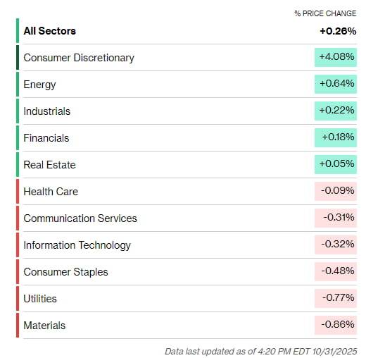 흔들리던 증시를 A팀(아마존, 애플)이 구조에 나섰습니다. 아마존은 클라우드 컴퓨팅 사업의 성장세가 3년 만에 최고치를 기록하며 환호를 받았습니다. 애플은 이번 분기 아이폰 판매량이 두 자릿수 증가할 것으로 전망을 내놓았습니다. 사실 이 둘뿐 아니라 이번 주 실적을 내놓은 매그니피센트 7 가운데 5개 모두 ‘어닝 서프라이즈’를 기록했고요. AI 투자가 가속하고 있다는 것도 확인되었습니다. 다만 매파적 인하를 단행한 10월 연방공개시장위원회(FOMC)의 구름이 남아 있습니다. 매파가 총출동해서 “금리를 내리지 말았어야 한다”라고 주장하면서 투자심리를 흔들어놓았습니다. Fed의 완화는 연말 '산타 랠리'를 위한 중요한 한 축이죠. 주가는 소폭 상승세로 마감했습니다.