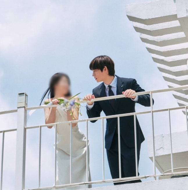 공개된 사진 속에서 그는 깔끔한 턱시도를 입고 신부와 다정하게 눈을 맞추며 행복한 예비 신랑의 모습을 보였다.