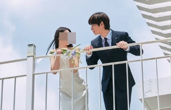 사진 속에서 공개된 단아한 모습의 예비신부는 수트를 입은 최낙타와 마주보고 미소를 짓고 있다.