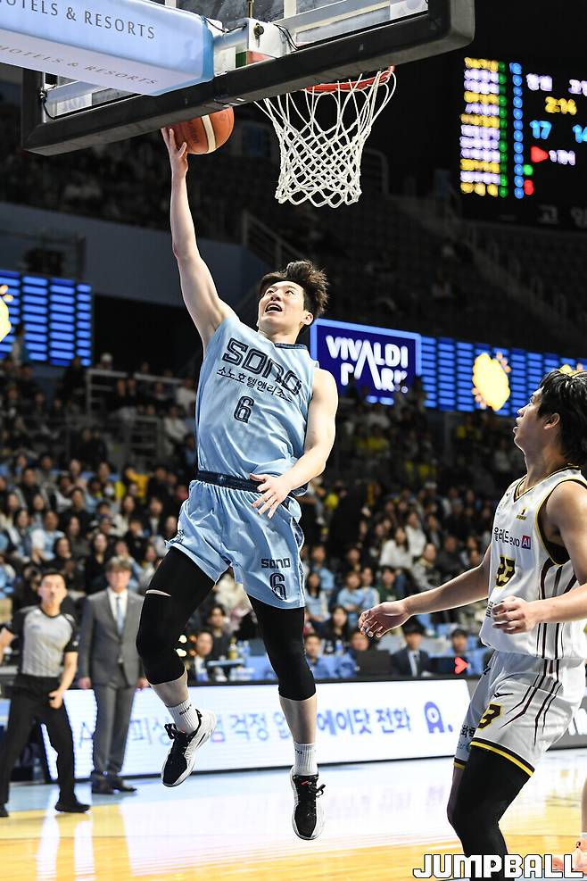 [점프볼=고양/유용우 기자] 1일 고양 소노아레나에서 열린 2025-2026 LG전자 프로농구 고양 소노와 창원 LG의 경기, 소노 이정현이 속공을 득점으로 연결하고 있다.