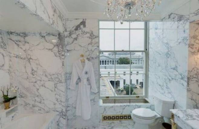 도널드 트럼프 미국 대통령이 유광 대리석과 황금빛 손잡이로 리모델링한 백악관 내 '링컨 욕실'을 사진을 공개했다.
