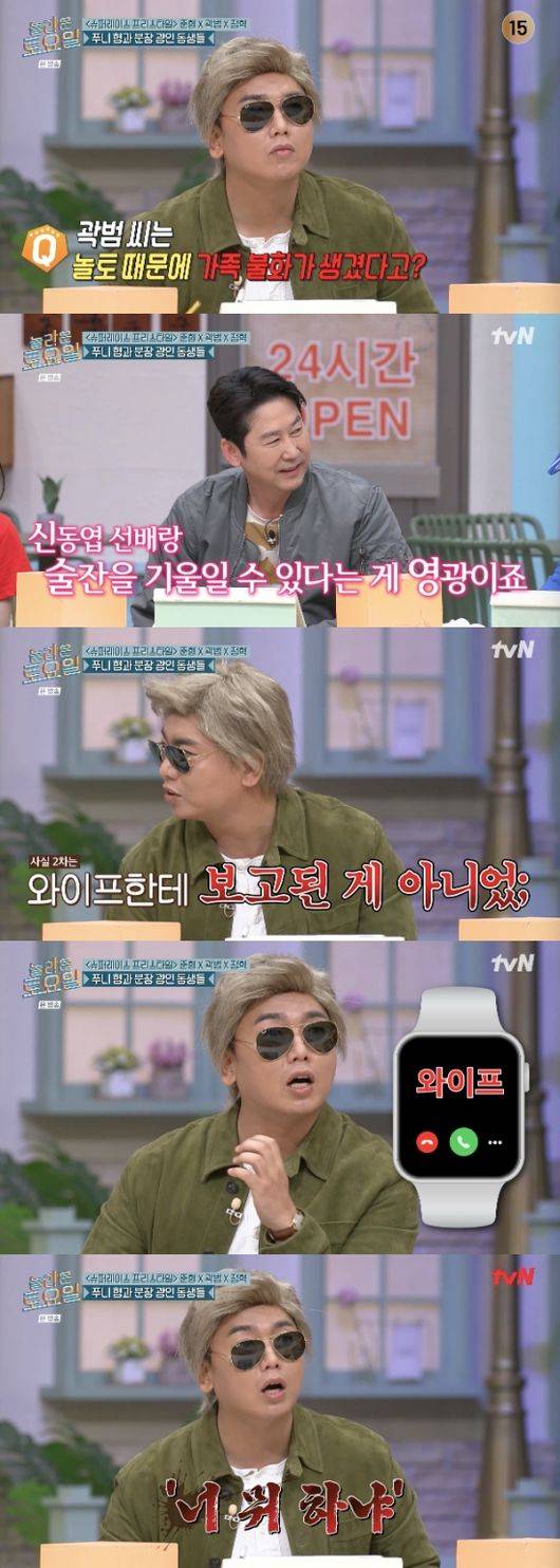 곽범이 신동엽과 '놀라운 토요일' 때문에 가정불화를 겪었다고 고백했다.