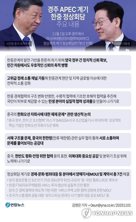 (경주=연합뉴스) 임형섭 이상현 황윤기 기자 = 이재명 대통령과 시진핑 중국 국가주석의 첫 정상회담이 1일 오후 경주국립박물관에서 열렸다.