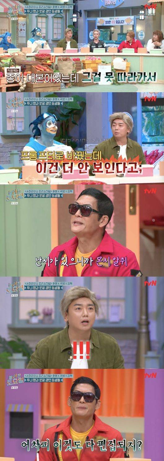 이에 곽범과 정혁은 “제보할 게 많다. 집에 못 간다”라고 말했고, 곽범은 “종이 대본이 있었는데 못 따라가더라. 프롬프터로 바꿨는데 더 안 보인다고 하더라. 3시간이 딜레이 됐다. 본인이 못 읽고 욕을 해서 방송에 쓰지도 못한다”라고 폭로했다.