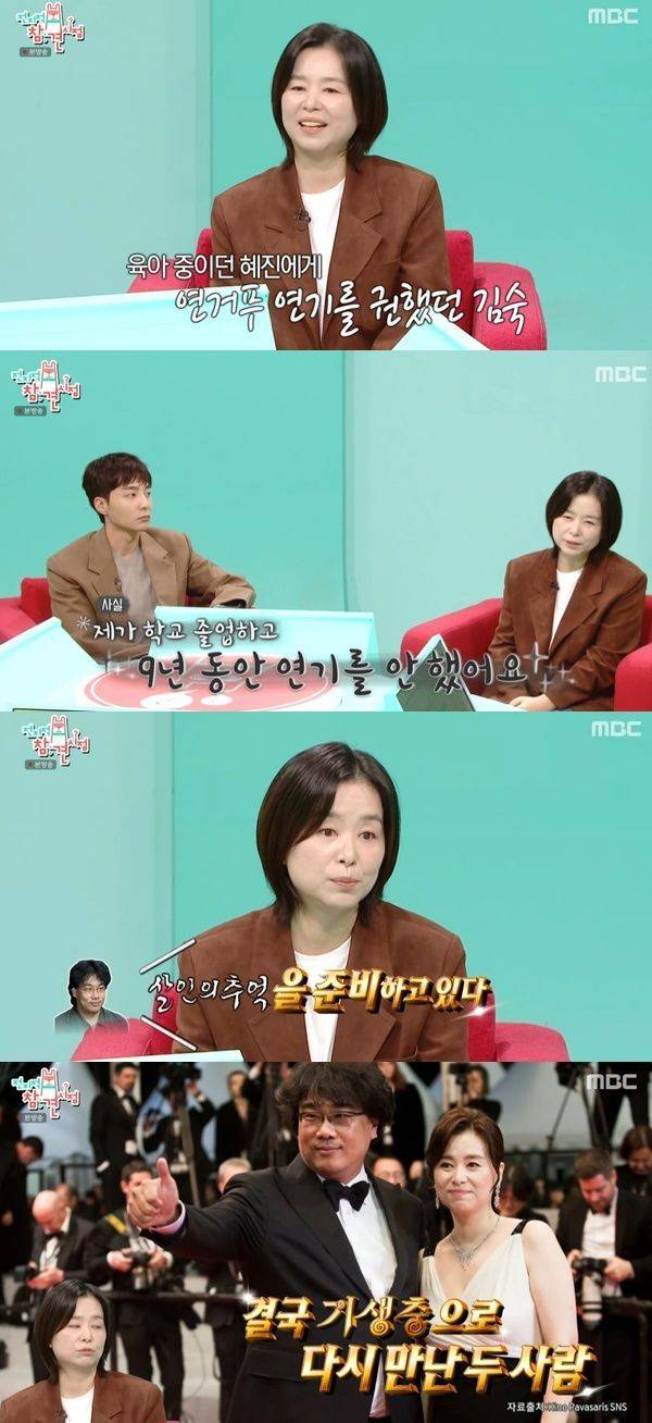 그러면서 장혜진은 "백화점에서 일할 때 봉준호 감독님 전화가 왔었다. '살인의 추억'을 준비하고 있다더라. 프로필 사진이 마음에 들어 여러 번에 걸쳐 나를 찾았다더라. 연기를 그만뒀다고 하니까 '내가 이 작품으로 성공하면 다시 만나자'고 하고 끊었다. 결국엔 '기생충'으로 만났다"는 스토리를 털어놨다.