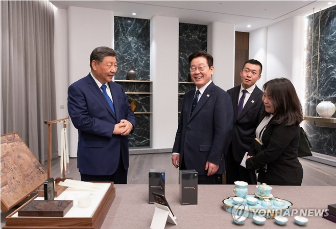 시진핑 중국 국가주석과 이재명 대통령이 지난 1일 정상회담을 마치고 선물을 교환하며 화기애애한 분위기를 연출했다.