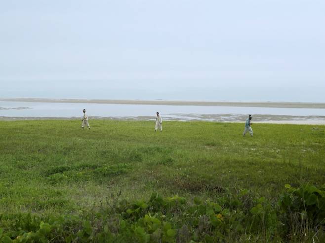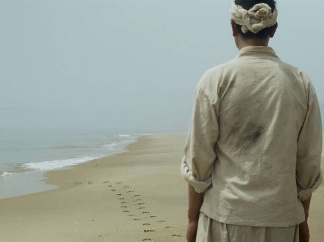 <바얌섬>의 제목인 '바얌섬'은 영화의 배경이 되는 가상의 공간이다. 여러모로 글 서두에 언급한 <라이프 오브 파이> 속 삶과 죽음이 교차하는 섬을 떠올리게 하는데, 실제 도입부터가 그러하다. 몽휘, 창룡, 꺽쇠란 이름의 세 사내가 이 섬 백사장에 표류한 모습으로부터 영화는 시작한다. 이들은 전쟁을 나가던 배, 이들의 증언에 따르자면 거북 모양을 하고 왜적에 맞섰다니 임진년 전쟁 당시의 거북선인 듯한 배에 타고 있었던 듯하다. 무튼 이 배가 풍랑을 만나 침몰했고 수군인 이들이 물살에 떠밀려 이 섬에 이르렀다는 이야기다.