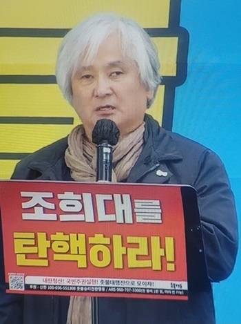 김민웅 촛불행동 상임대표는 1일 오후 4시부터 서울시 서초구 대법원 앞(서초역 2번 출구)에서 촛불행동 주최로 열린 '내란청산-국민주권 실현 촉구, 163차 촛불대행진' 집회에서 기조발언을 했다.