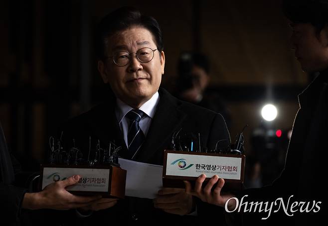 | ▲ 2023년 2월 10일 당시 이재명 더불어민주당 대표가 서울 서초구 서울중앙지검에 대장동 등과 관련 3차 검찰소환으로 조사를 받기 위해 출석하고 있다. |
