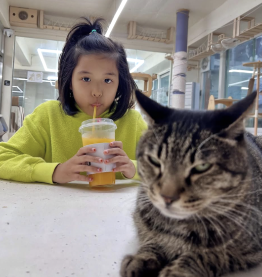 함께 공개된 사진에는 딸 로아가 고양이를 품에 안고 있는 사랑스러운 모습이 담겼다.