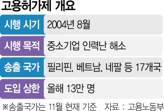 고용허가제는 내국인을 구하기 어려운 중소기업 등이 외국인 근로자를 '합법적으로' 고용할 수 있도록 정부가 허가하는 제도다.