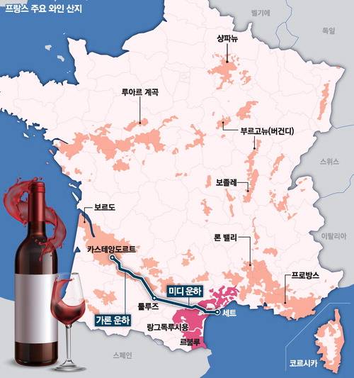 이 지역 와인이 타 지역에까지 알려지기 시작한 것은 17세기 후반 지중해에서 내륙으로 파고든 미디 운하가 개통하면서입니다. 운하는 대서양에서 내륙으로 파고드는 보르도의 가론 운하와 연결돼 북유럽과 지중해 간 무역 루트를 크게 단축했습니다. 이 획기적인 루트에 물동량이 몰리면서 운하가 속한 랑그독 지역의 상업이 크게 발전하는 계기가 됐고요. 이런 분위기를 타고 지역 혹은 국가 내에서 주로 소비되던 랑그독 와인 역시 유럽 전역으로 확산합니다.