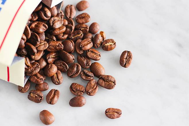 | ▲ 커피백에서 쏟아지는 향기로운 커피 원두 |