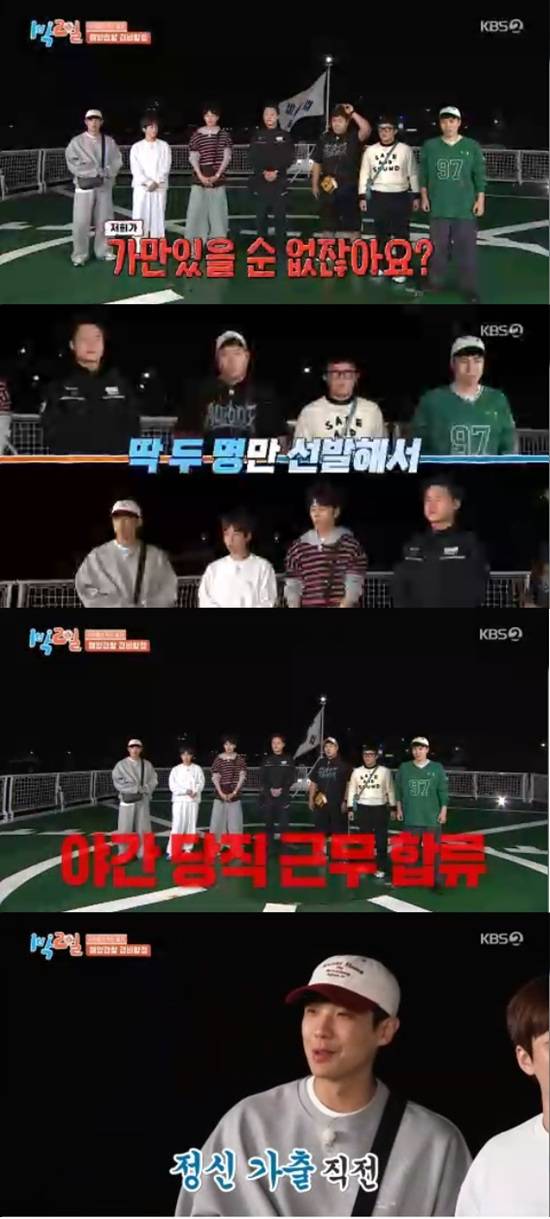 주종현PD는 멤버들에게 2명만 선발해서 해경의 야간 당직 근무에 합류한다고 말했다.