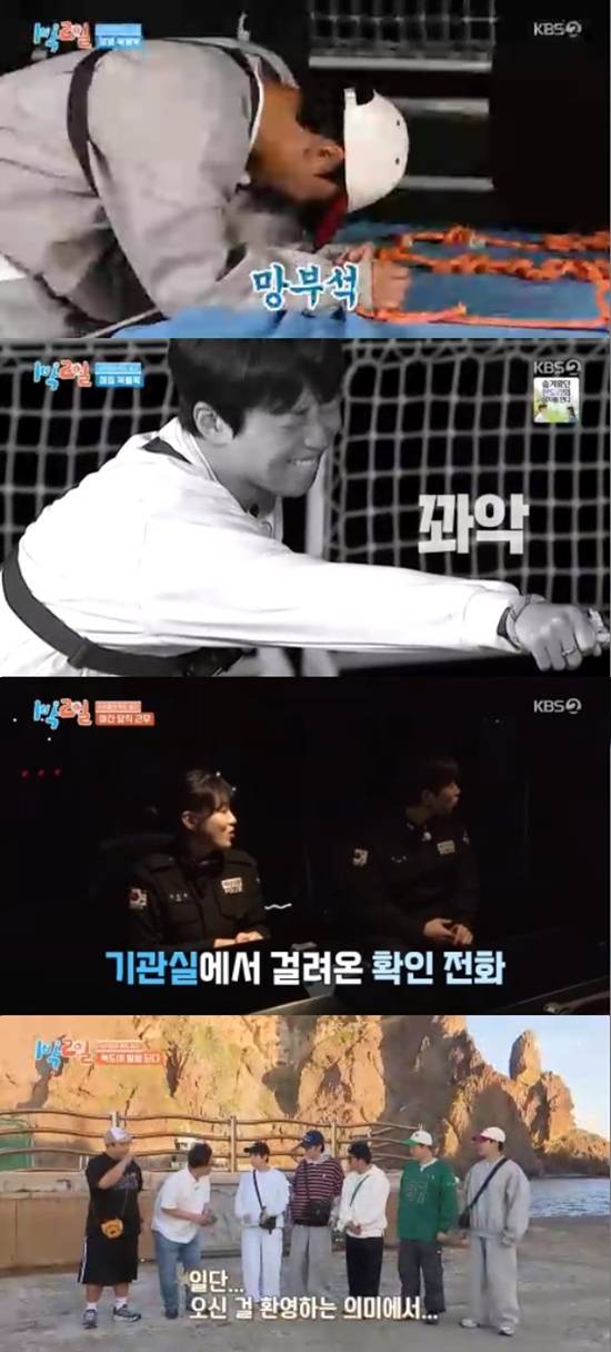 2일 방송된 KBS 2TV '1박 2일 시즌4'에서는 김종민, 문세윤, 조세호, 이준, 딘딘, 유선호의 독도 입성기가 전파를 탔다.