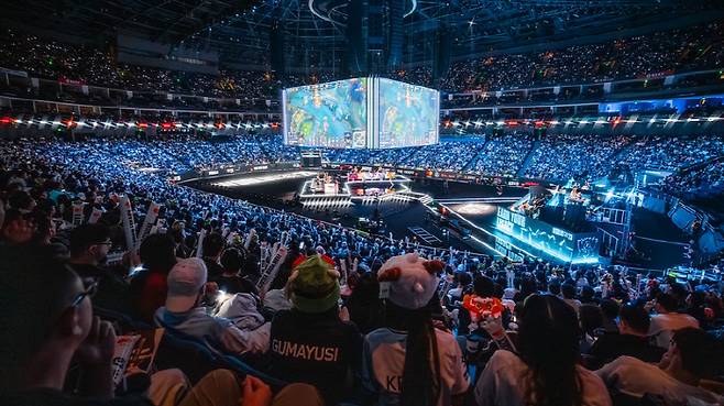 2일 같은 장소에서 열린 T1과 LPL(중국)의 TES의 4강전에선 T1이 3대0의 일방적인 승리로 지난 2022년부터 시작해 4년 연속 롤드컵 결승에 올랐다. 지난달 30일 열린 LPL의 우승후보 AL을 3대2로 물리쳤던 T1은 TES마저 꺾으며 역대 롤드컵 다전제 승부에서 중국에 단 한번도 패하지 않았던 기세를 그대로 이어갔다.