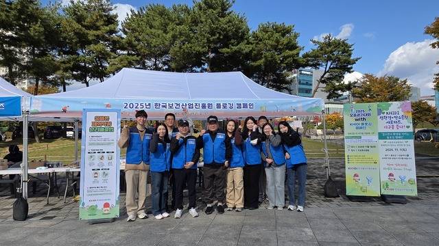 KHIDI 친환경탄소중립 서포터즈와 함께한 보건산업진흥원은 경품으로 친환경 장바구니와 화재 예방파우치, 안전멀티탭, 친환경 소재로 만든 돗자리와 보냉백 등을 제공해 큰 호응.