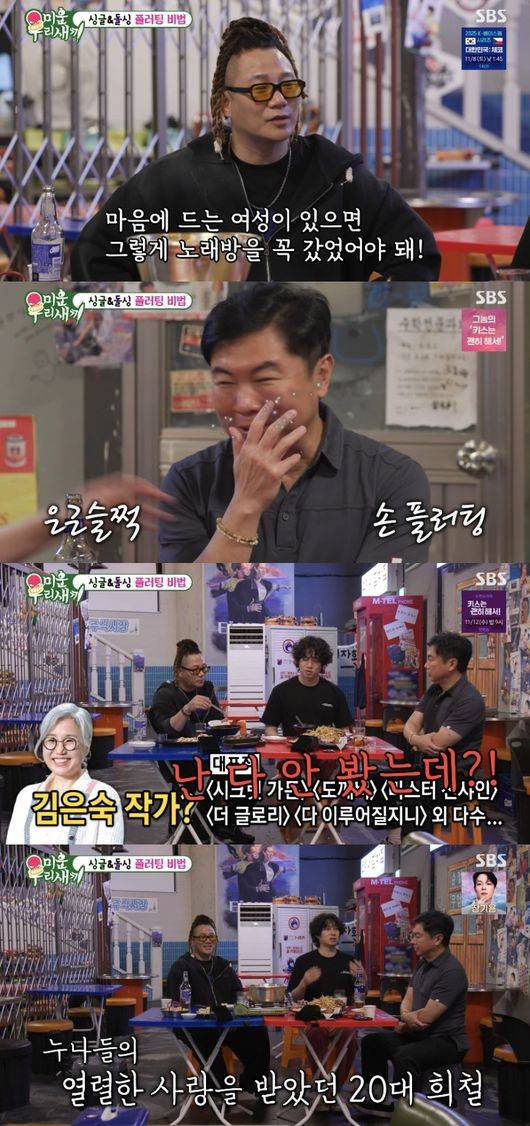 세 사람은 플러팅에 대해 이야기를 나눴다. 윤민수는 “20대 땐 그래도 저는 꽤 괜찮았다. 마음에 드는 여성이 있으면 그렇게 꼭 노래방을 갔어야 했다. 노래를 몇 곡 불렀다”라고 회상했다.