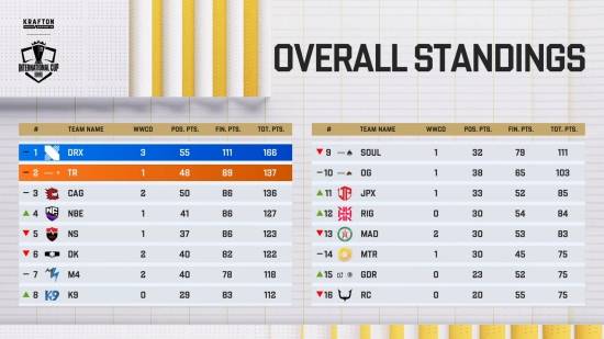 파이널 2일 차 경기 결과, 버투스 프로가 157점으로 1위에 올랐다. 그리고 트위스티드 마인즈가 135점으로 2위, 포레스트 네츄럴 게이밍이 130점으로 3위, 배고파가 117점으로 4위, 풀 센스가 111점으로 5위에 이름을 올렸다.