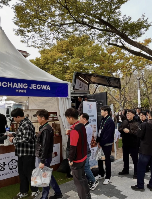 공개된 사진에는 경주 부창제과 판매 부스 앞에 길게 늘어선 관람객들의 모습이 담겼다. 이장우는 “내외신 기자분들이 호두과자 맛보려고 줄 서 계신다고 한다. 역시 K-호두과자 다르다”고 덧붙이며 남다른 애정을 드러냈다.