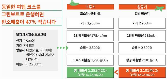 | ▲ 환경재단 그린보트 탄소배출 비교 |