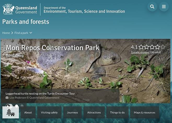 호주 퀸즐랜드주 번다버그 인근에 위치한 몬 레포스 국립공원은 해양 거북 보전의 모범 사례로 주목받고 있다. 이곳은 남태평양 지역에서 가장 중요한 로거헤드 거북의 산란지로, 매년 11월부터 3월까지 약 2만 5000명의 방문객이 해양 거북의 산란과 부화 과정을 관찰하기 위해 찾는다.[9]