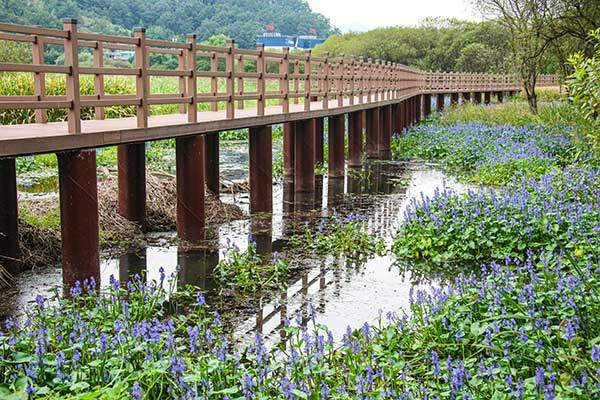 그래서 차로 올라 생태주차장에 차를 대고 한우산 정상부를 순환하는 숲길인 숨길이 인기다. 각 구역마다 자생수목원, 고사리원, 억새원, 특화식물원, 철쭉설화원, 홍의송원 등 볼거리들이 가득하다. 계절에 맞춰 철쭉과 개나리, 억새, 단풍이 장관을 이룬다. 사실상 산정에 있는 거대 식물원이자 산상공원인 셈. 길에서 만날 수 있는 전망대에선 사방으로 펼쳐지는 의령의 산세를 조망할 수 있다. 도깨비 조형물도 아이들이 좋아하는 명소.