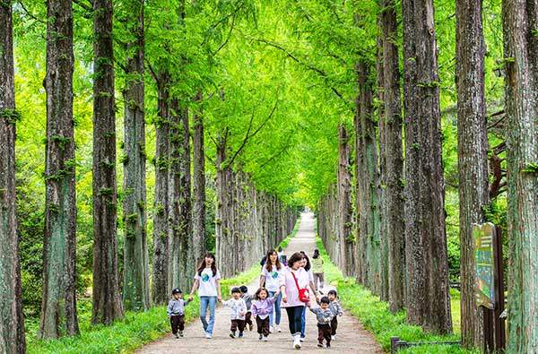 시작부터 하이라이트다. 정문으로부터 산림치유센터까지 곧게 이어지는 무장애 메타세쿼이아 길이 가장 압권이다. 이어 식물이나 산림치유에 더 관심이 있다면 연구원 부지 내에 머물면 된다. 각종 건강 측정 장비 및 아로마 테라피 등을 통한 개인별 맞춤형 산림 치유 프로그램이 운영되고 있다.