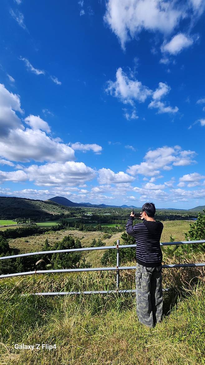 | ▲ 용눈이오름에서 아들의 뒷모습 용눈이오름에서 사진찍고 있는 아들의 뒷모습 |