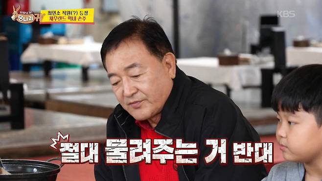 손자는 "사정이 생겨 할아버지가 운영하기 힘들면 물려줄 거냐"며 야망을 드러내 모두를 놀라게 했다. 이에 임채무는 "듣기 곤란하게 질문한다. 물려주면 너 할 수 있냐"며 웃었다. 그러면서도 "그런 질문 하지 마라. 할아버지는 물려주는 건 안 한다"며 단호한 대답을 내놨다. 그는 "이루고자 하는 건 노력해서 네 힘으로 해야 한다. 물려받은 건 지속할 수 없다. 절대 반대"라며 손자를 위해 진심 어린 조언을 건넸다.