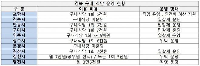 실제로 영천시청 인근 점심 평균 가격 대비 구내식당의 1식의 체감가가 2000원 미만으로 형성되면서 수요 왜곡이 발생하는 것으로 나타났다.