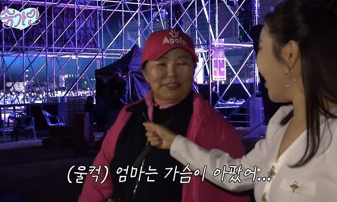 무대가 막바지에 접어들고 송가인이 '엄마 아리랑'을 부르기 시작하자, 어머니는 노래를 따라 부르며 점점 목이 메었다. 결국 고개를 숙이며 눈시울을 붉혀 보는 이들의 마음을 뭉클하게 했다.