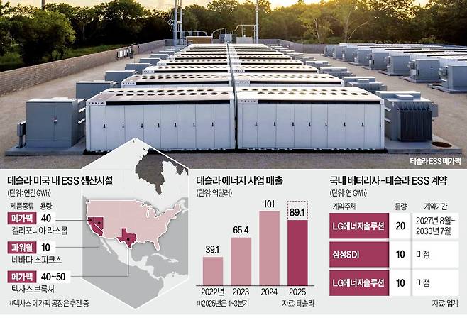 전기차 캐즘(대중화 직전 일시적 수요 침체)에 신음해온 한국 배터리 업체들은 테슬라 생태계에 올라타면서 새로운 기회를 잡았다. 삼성SDI가 계획대로 테슬라에 연간 10GWh에 달하는 ESS용 배터리를 납품하면 매년 최소 1조원 이상 매출을 거둔다. LG에너지솔루션도 30GWh로 공급 규모를 50% 늘리면 매년 3조원 이상 덩치를 불릴 수 있다.