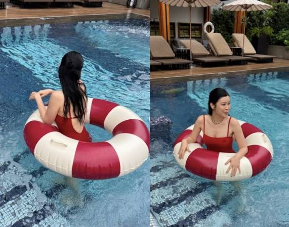 공개된 사진 속 린은 수영장에서 여유로운 휴식을 취하는 모습이다.