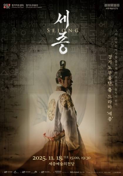 세종은 경기도무용단의 대표 레퍼토리로, 세종대왕의 인간적 면모와 훈민정음 창제 과정을 현대무용 어법으로 풀어낸 창작 작품이다.