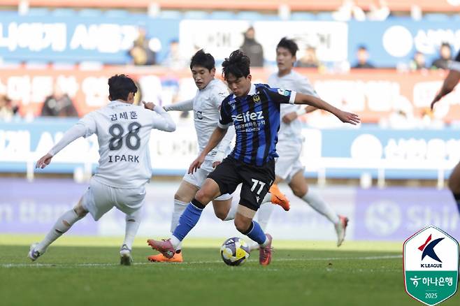 2024년 윤정환 감독은 강원FC를 이끌며 K리그 최고의 '히트상품' 양민혁을 발굴했다. K리그1 영플레이어상을 수상하고, 곧바로 토트넘 이적까지 성공했다. 윤 감독이 인천으로 둥지를 옮기고, 가장 큰 관심을 모은 부분 중 하나도 유망주 발굴이었다. 누가 양민혁처럼 기회를 받아서 가파른 성장세를 보일지에 관심이 쏠렸다. 선택을 받은 주인공은 박승호였다. 윤 감독이 시즌 개막 전부터 주목한 재능이었다. 2003년생으로 단국대 진학 후 인천에 입단해 본격적인 프로 무대에 뛰어들었던 박승호는 2023시즌 데뷔 시점부터 적지 않은 관심을 받은 인천 최고의 유망주다.