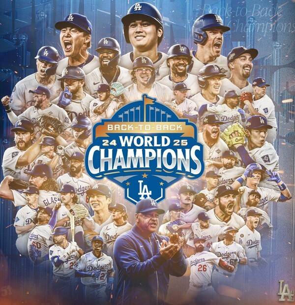 다저스는 지난 2일(한국시간) 토론토 블루제이스와의 2025 WS 7차전에서 연장 11회 접전 끝에 5-4로 승리, 2024년에 이어 2년 연속 우승을 차지했다.