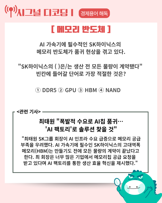 - 핵심 요약: 최태원 SK그룹 회장이 'SK AI 서밋'에서 오픈AI 700조 원·메타 850조 원 등 폭발적 AI 인프라 투자와 에이전틱 AI 확산으로 AI 수요 예측 모델이 존재하지 않는다고 진단했다. 또 그는 AI 인프라를 위한 메모리 반도체와 그래픽처리장치(GPU) 등이 얼마나 더 필요할지 예측조차 하지 못하는 상황이라고 진단했다. 실제 폭발적인 AI 수요 증가로 메모리반도체 공급 부족 현상도 심화하고 있다고 전했다. 특히 AI 가속기에 필수인 SK하이닉스의 고대역폭메모리(HBM) 등은 만들기도 전에 모든 물량의 계약이 끝나고 있다고 한다.