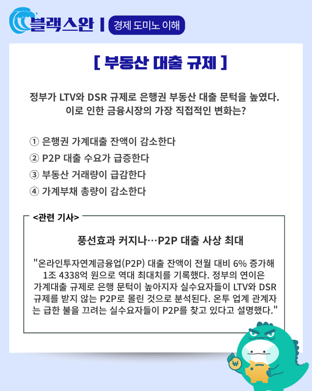 ▶기사 바로가기: P2P대출 6% 늘어 역대 최대···대출규제 강화에 실수요 몰려