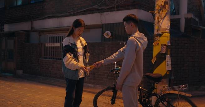 채한영 감독의 작품 속에서는 관계 내부의 서로 어긋난 정서와 성장기의 흔들리는 내면과 같은 소재들이 지속적으로 발견되어왔다. <선아의 방>(2017)에서는 가족이라는 경계 속의 타자성이, <보이는 어둠>(2020)에서는 정확히 명명할 수 없는 불안이 그려지는 식이었다. 소재를 스크린 위로 호출해 내는 방식 역시 일관성을 보였다. 대사를 최소화하는 대신 인물의 시선과 침묵에 중심을 두고 내면을 들여다보는 연출은 그 감정을 설명하기보다는 관객이 이해하는 과정으로 이끌었다. 이번 작품 역시 유사하다. 청소년기의 설익은 사랑과 연애 위에서 그려지는 두 인물의 관계와 서사는 그들의 로맨스가 무조건적으로 무해하고 순수할 수 있다는 착각에 균열 하나를 일으키며 내부적 권력과 위계를 보여주고자 한다.