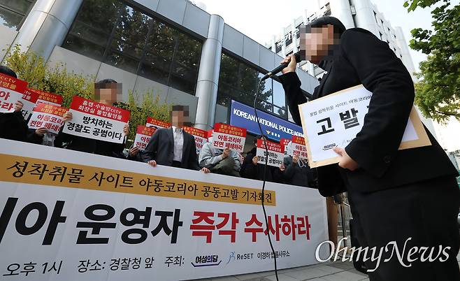 여성의당, 디지털성범죄 근절 활동단체 '리셋(ReSET)', 이경하 변호사(이경하 법률사무소)는 4일 오후 1시 경찰청 앞에서 기자회견을 열고 "야동코리아 운영자를 엄중 수사·처벌해 성착취물 생산·유통·소비 과정에서 여성을 착취하는 끔찍한 폭력의 고리를 끊어야 한다"고 요구했다. 이들은 기자회견 이후 경찰청에 고발장을 접수했다.